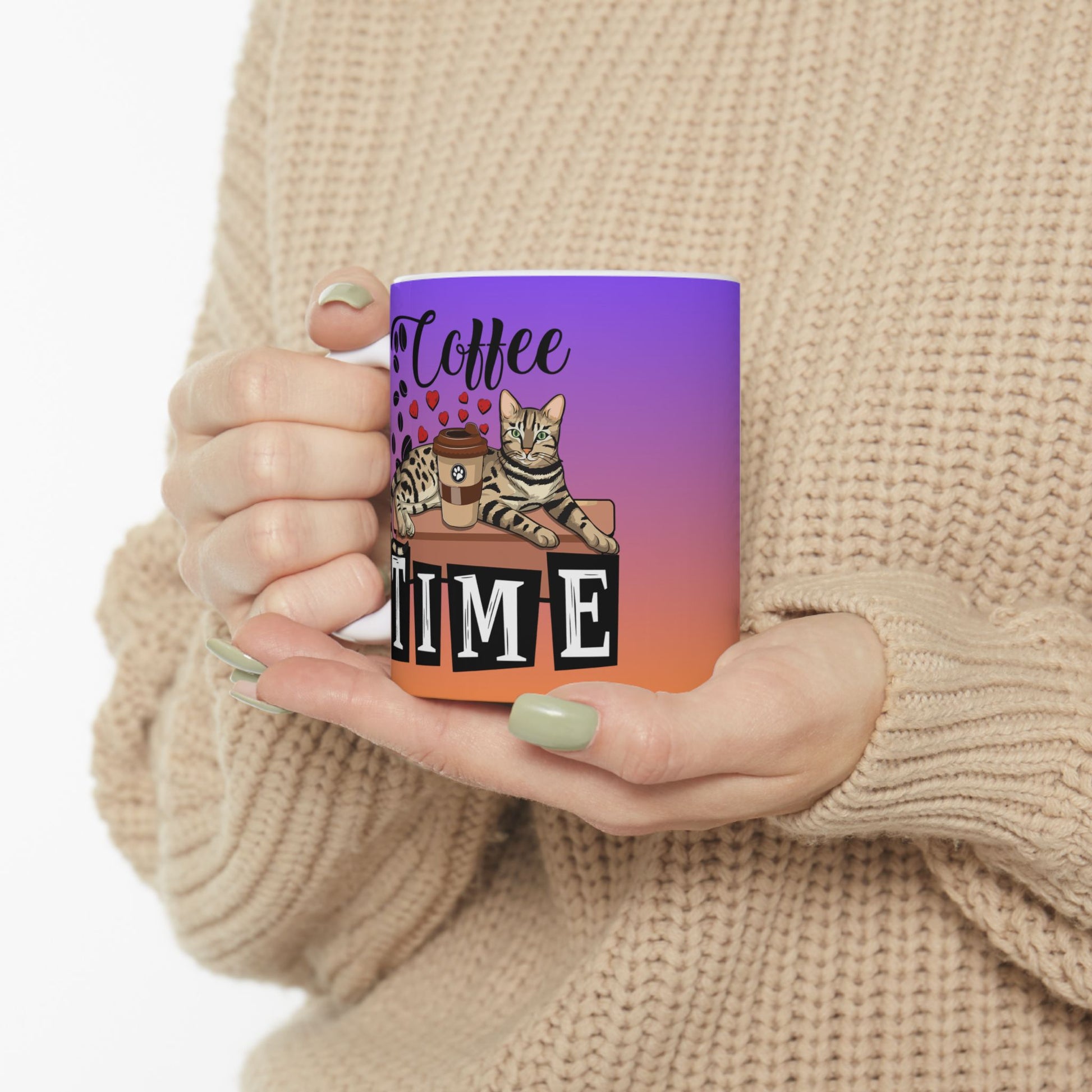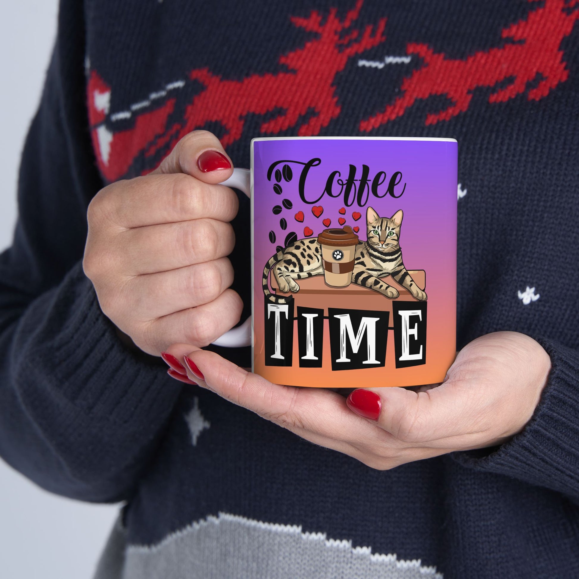 This cute Bengal poses with his cuppa joe, surrounded by a flurry of coffee beans and love hearts - a reminder that coffee time and cat cuddles is always time well spent. Perfect for cat lovers and those who appreciate playful designs, this mug is a fun addition to your kitchenware. Ideal for gifting on Christmas, birthdays, holidays, and any occasion that calls for a smile. Meow! ☕❤️