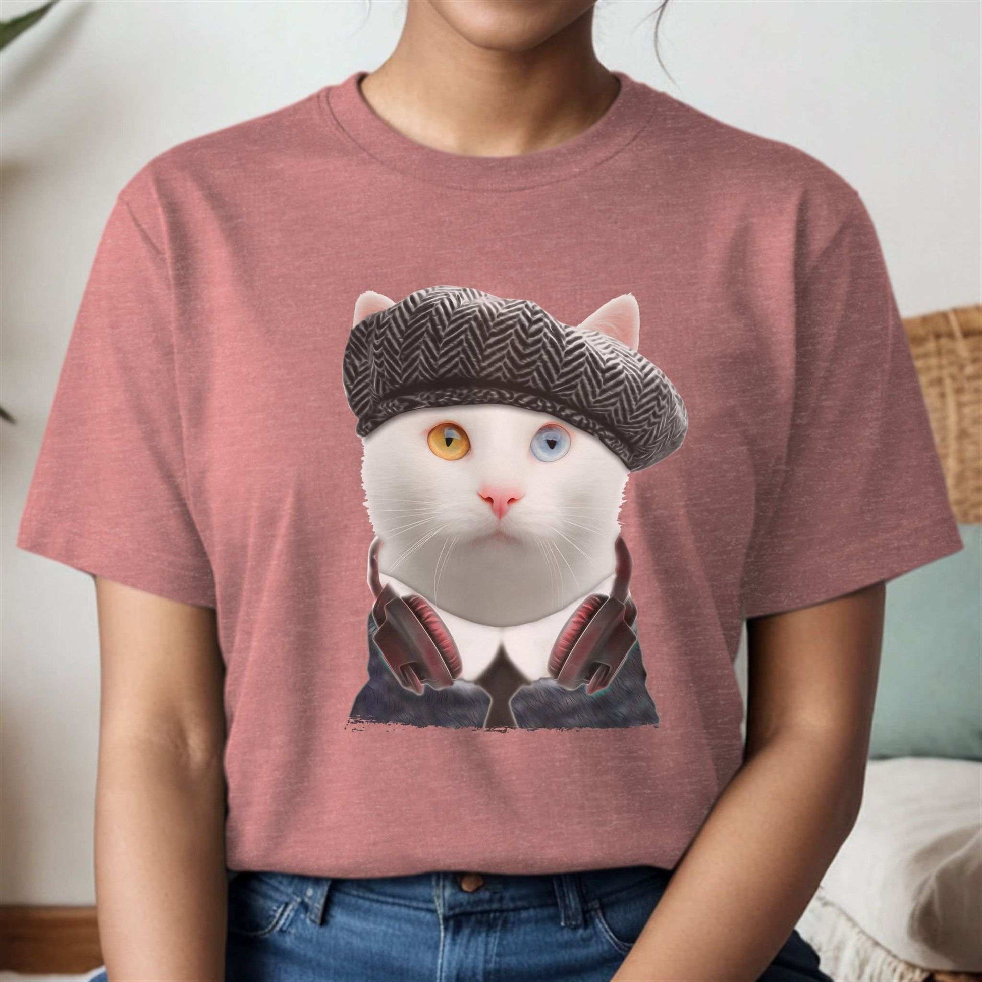 Get ready to be the coolest cat in town with our Headphones Crew Neck T-Shirt! Featuring a hip feline donning a baker boy hat and wearing headphones around his neck, this shirt is the perfect blend of purr-sonal style and comfort. Meow!