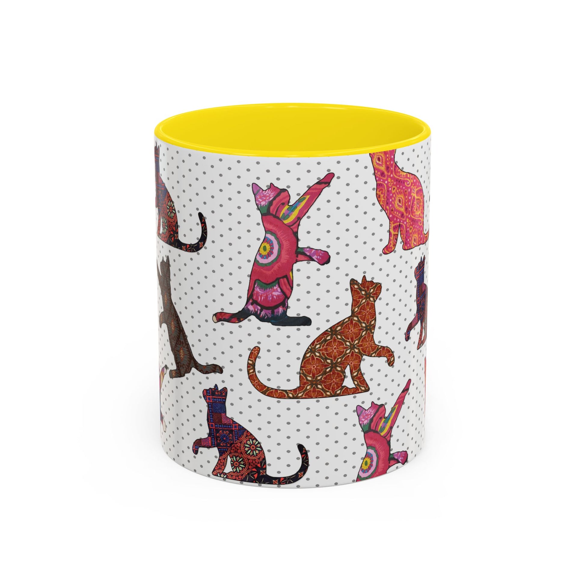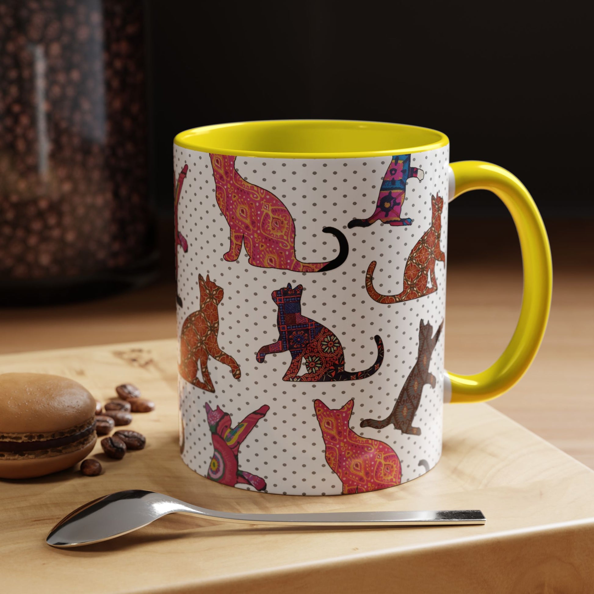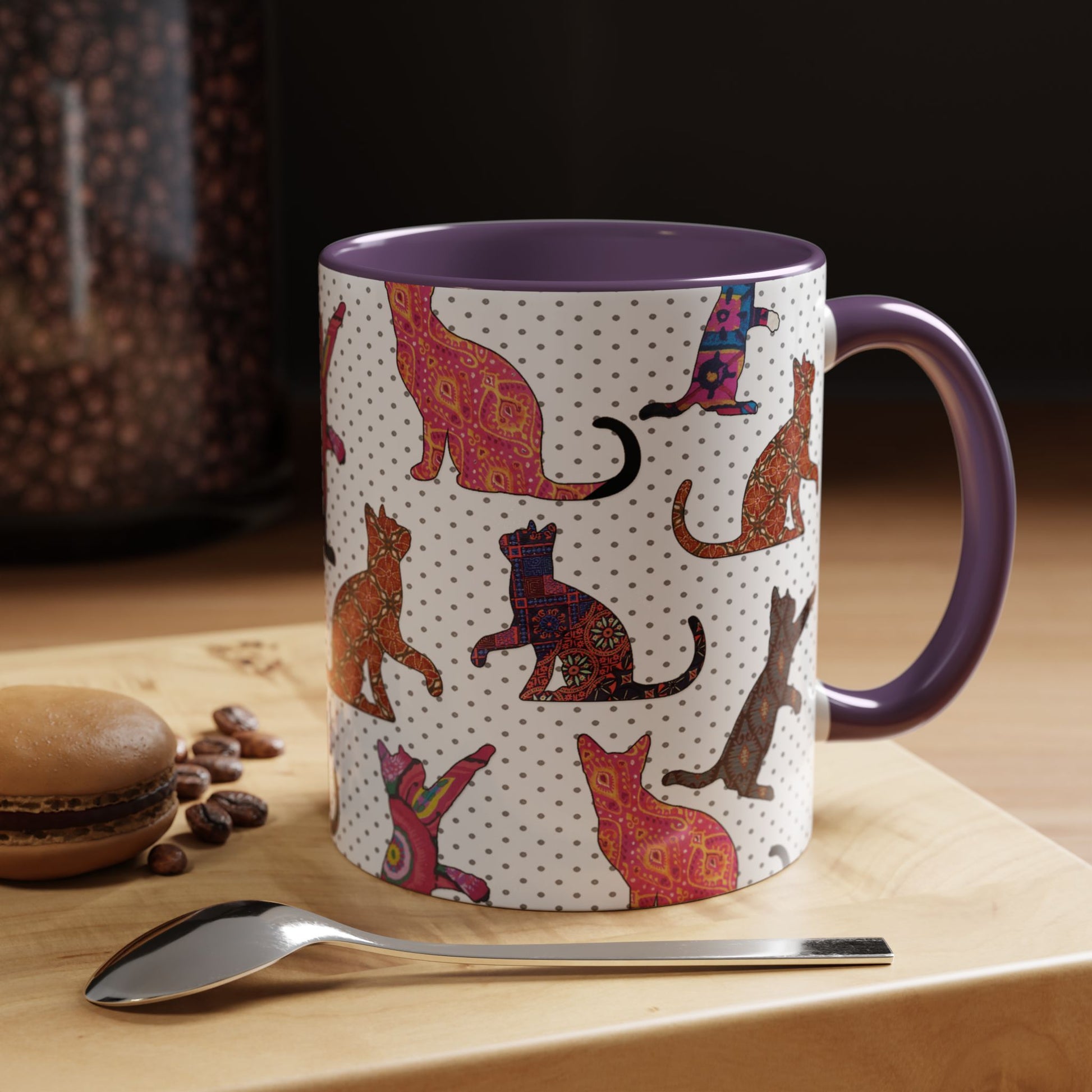 Show your passion for pussycats in a neater way than with words alone with this unique mug of Silhouette cats in eye-popping patterns and colors. This cup exudes cat chic vibes and is bound to be the cat's meow in any trendy kitchen and ideal for gifting on birthdays, holidays, and any occasion that calls for a smile. Meow!